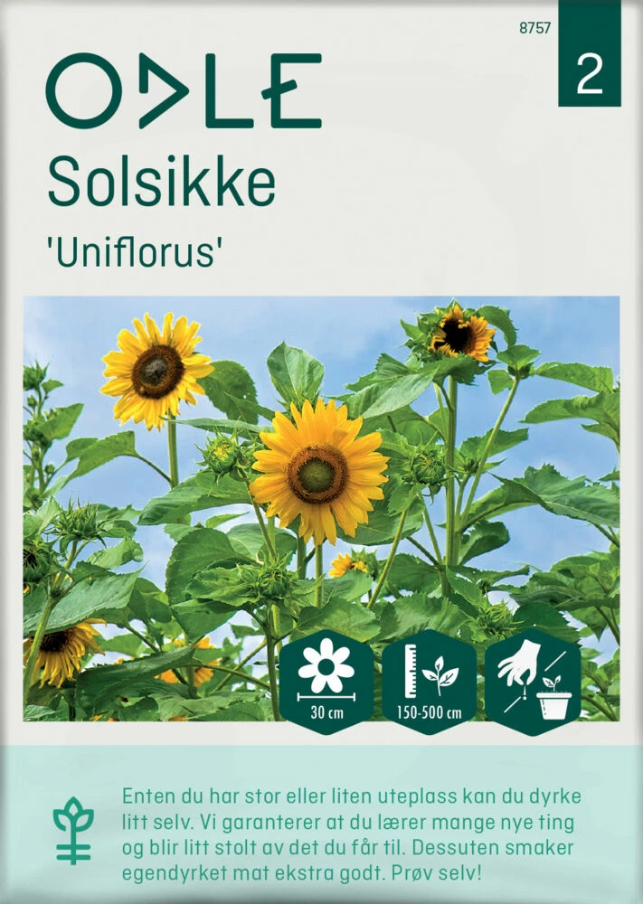 En kraftigvoksende og praktfull solsikke med store gullgule blomster.