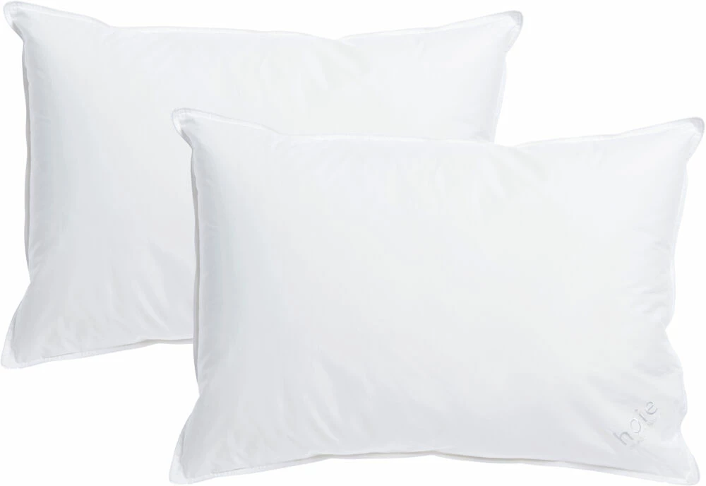Høie DownFeel pute former seg perfekt omkring nakke og hode, og gir meget god støtte. Fylt med 800 gram downfeel microfiber som er lett og myk som dun. Trekk i 100% bomullstwill. Aloe Vera behandlet. Kan vaskes i maskin og må tørkes i trommel. Str: 50×70 cm. Pakket i bag.