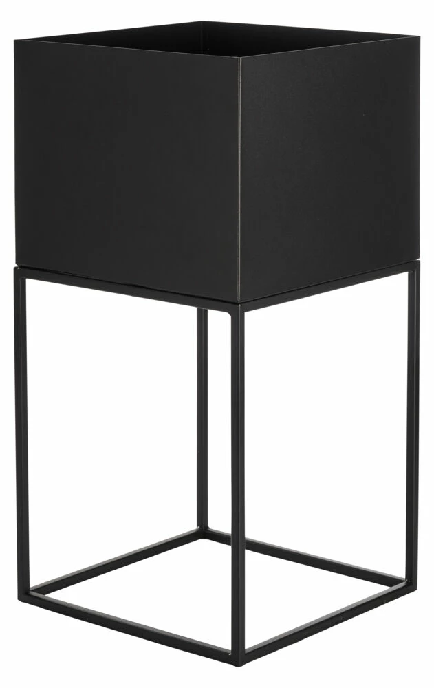 Elegant plantekasse i pulverlakkert metall. Totalhøyde på 55 cm. Høyde plantekasse: 23 cm.