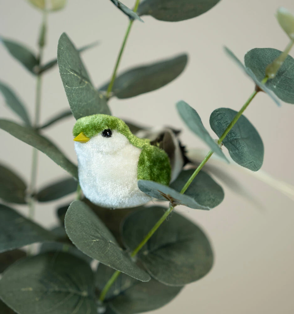 Pio dekorfugl med fjær på klype, 3pk. Finnes i tre ulike farger, gul, grønn eller natur. Størrelse på fugl 16×3,5x4cm. Dette er ikke en leke.