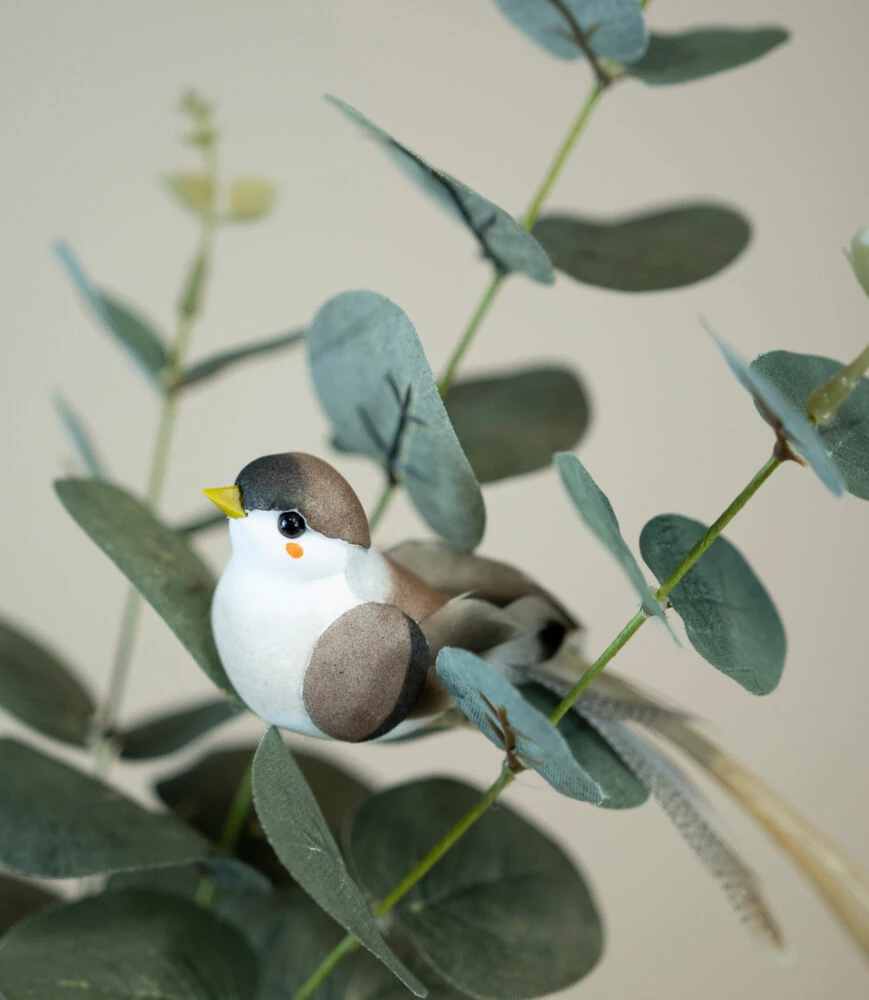 Pio dekorfugl med fjær på klype, 3pk. Finnes i tre ulike farger, gul, grønn eller natur. Størrelse på fugl 16×3,5x4cm. Dette er ikke en leke.