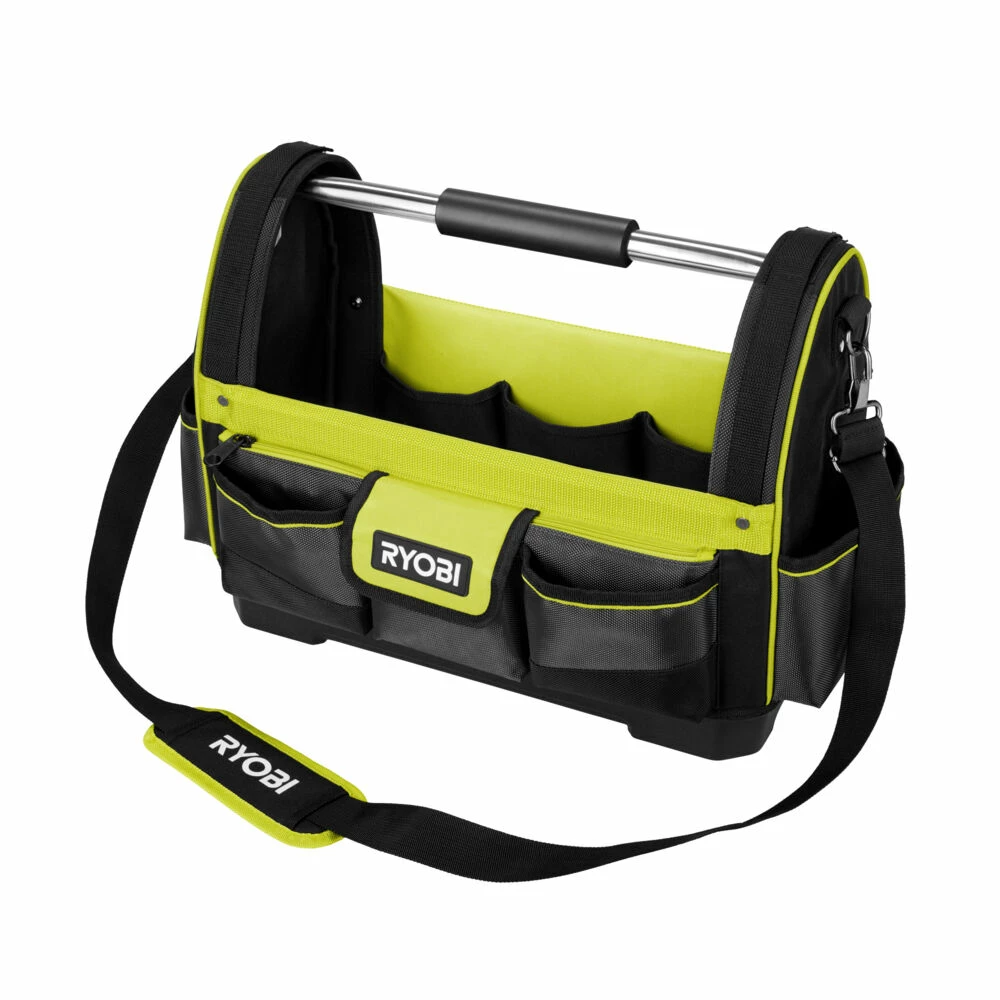 Ytterside: 1 glidelåslomme, 1 frontlomme, 1 sidelomme på hver side, 3 baklommer og 1 målebåndholder. Innside: 6 håndverktøyholdere.