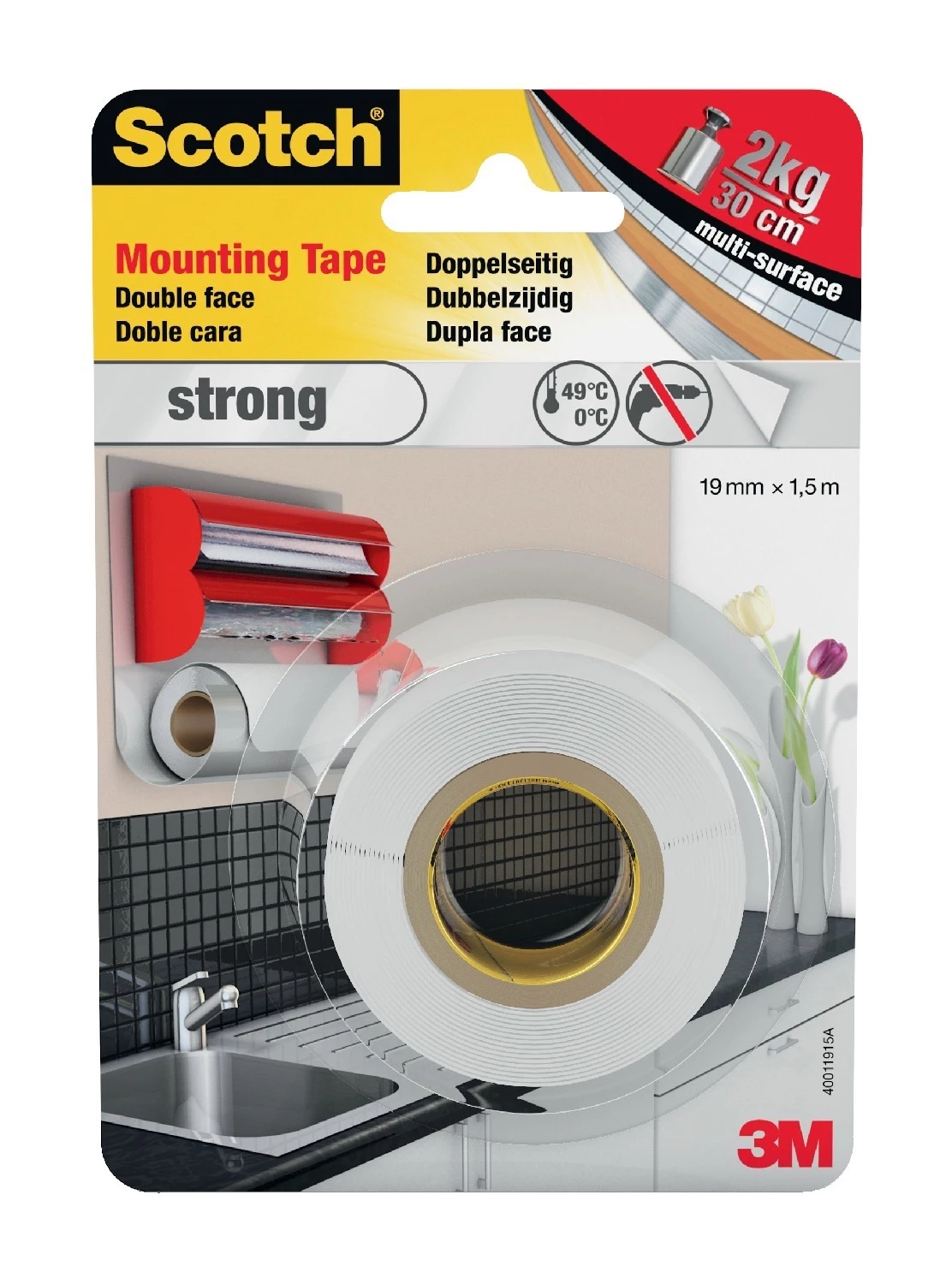 Produktnummer: 4046719732203 Kategorier: Tilbehør til verktøy, Verktøy Stikkord: 19 mm x 1,5 m, Dobbeltsidig skumtape til montering, Kan bære opptil 2 kg pr 30 cm